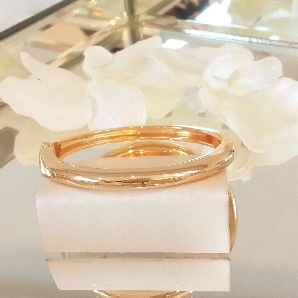 Bracelete liso de metal.Semijoias banhadas em ouro 18k e verniz especial de proteção.