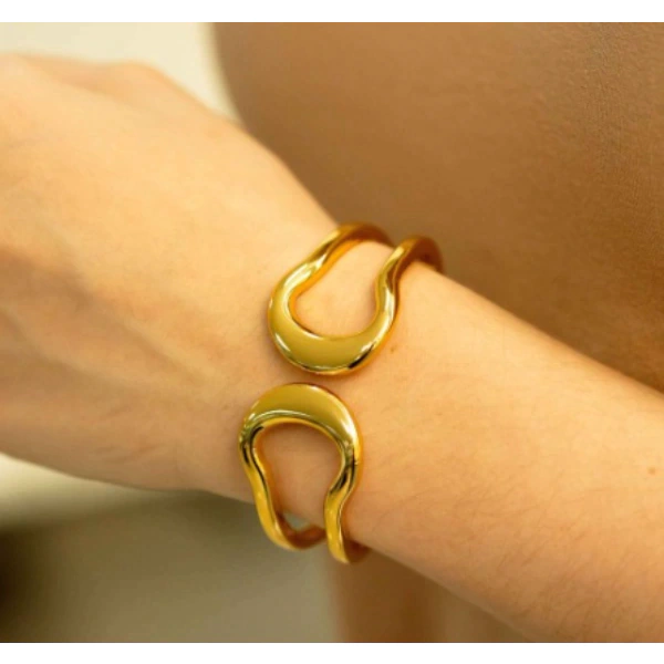 Lindo bracelete em metal liso banhado em ouro 18k.