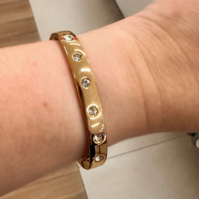 Bracelete com pontos de luz e banho de ouro 18k com verniz italiano.