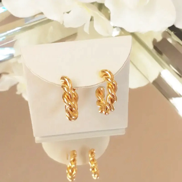 Brinco de argola de metal torcida. (Peça banhada em ouro 18k)