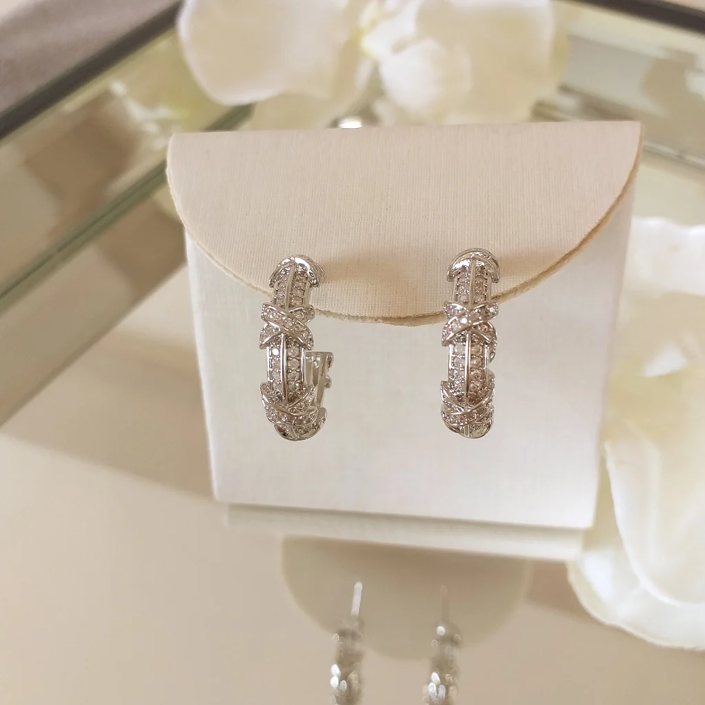 Brinco de argola inspiração em zircônia banhado em ródio e verniz de proteção (hipoalergênico)