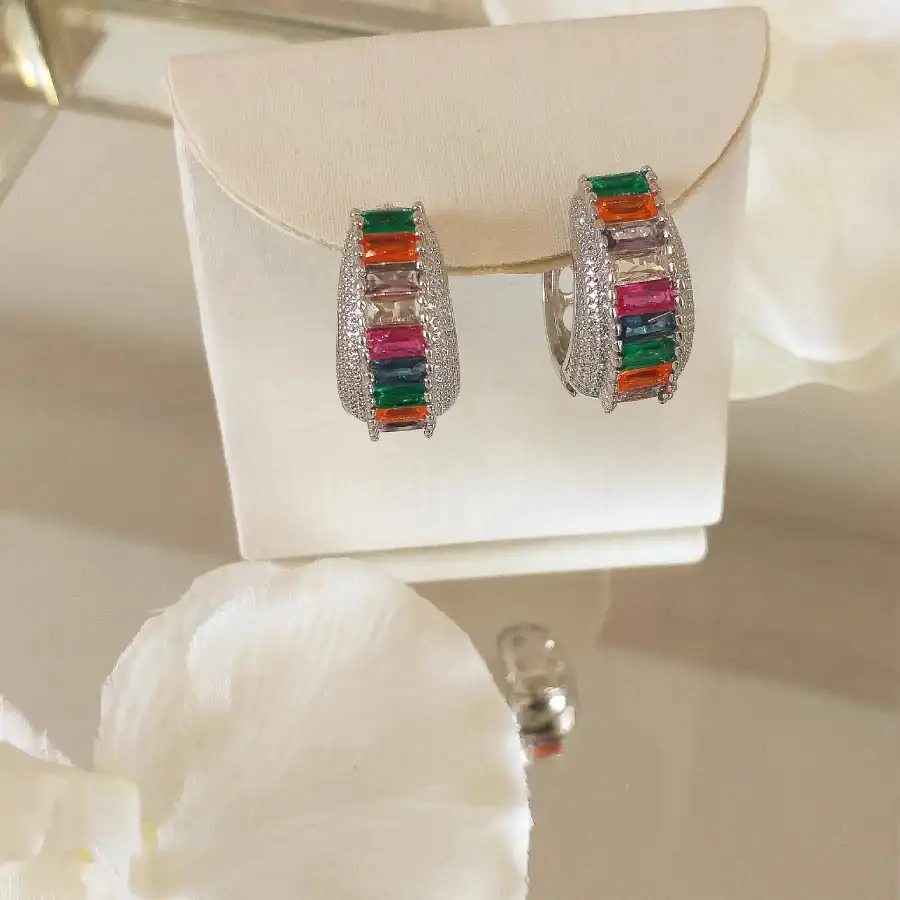 Brinco de Argola com zircônia rainbow em ródio branco