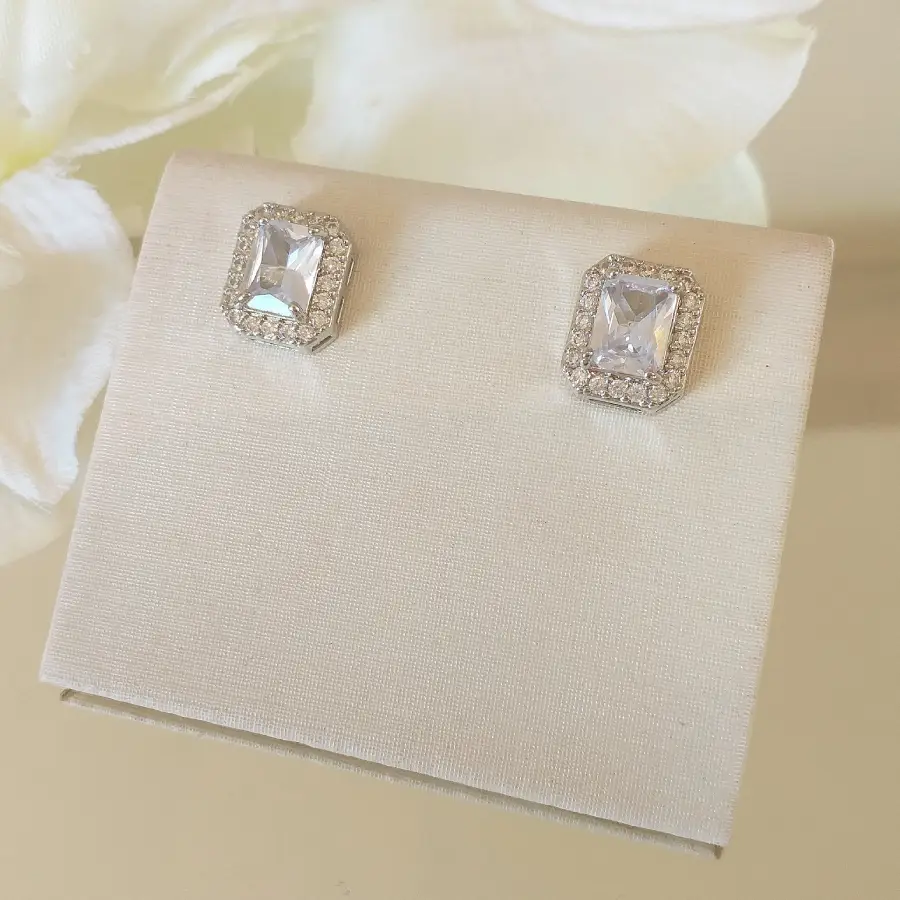 Brinco Baguete Royal cravejado de microzircônias e pedra Cristal banhado em ródio