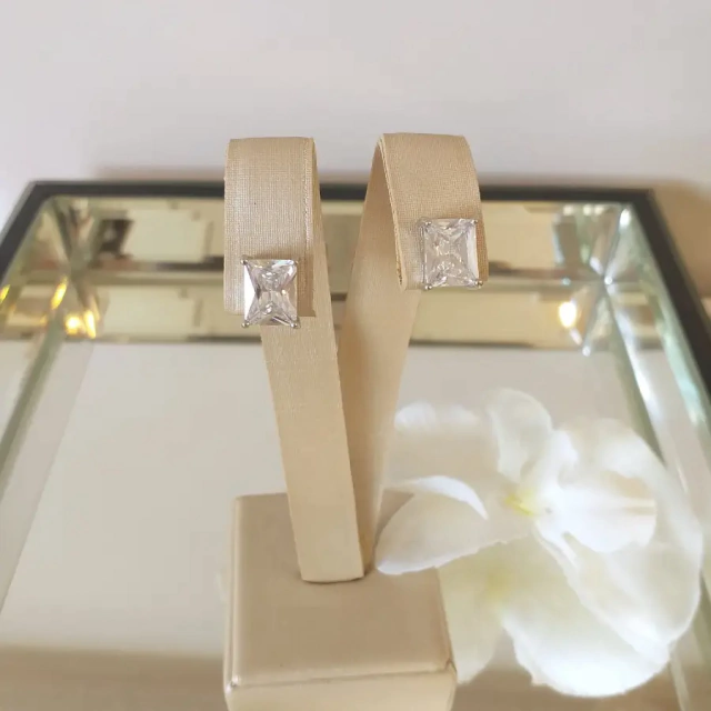 Lindo brinco baguete de zircônia 1cm banhado em ródio