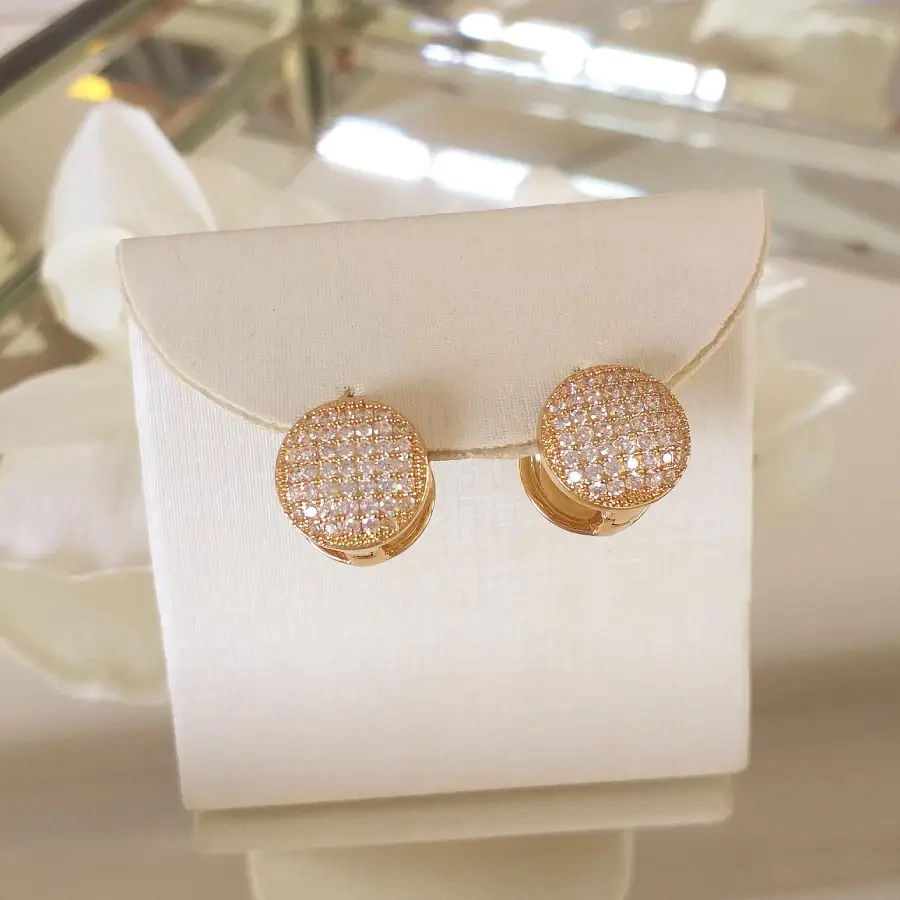 Em até 6x de R$ 4,95 sem juros À vistaR$ 28,22no Pix Brinco de bolinha cravejada banhada em ouro 18k