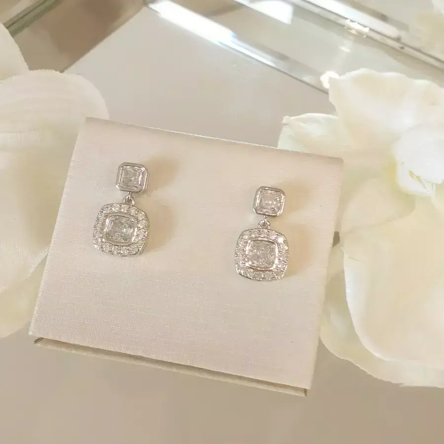 Brincos carré de zircônia cristal, banhado em ródio branco e verniz.2 cm