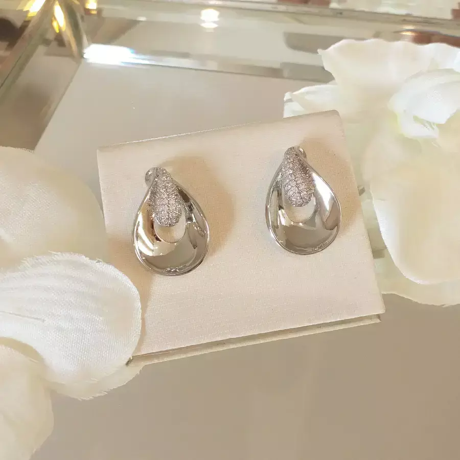Brinco de gota de metal e zircônias banhada em ródio branco