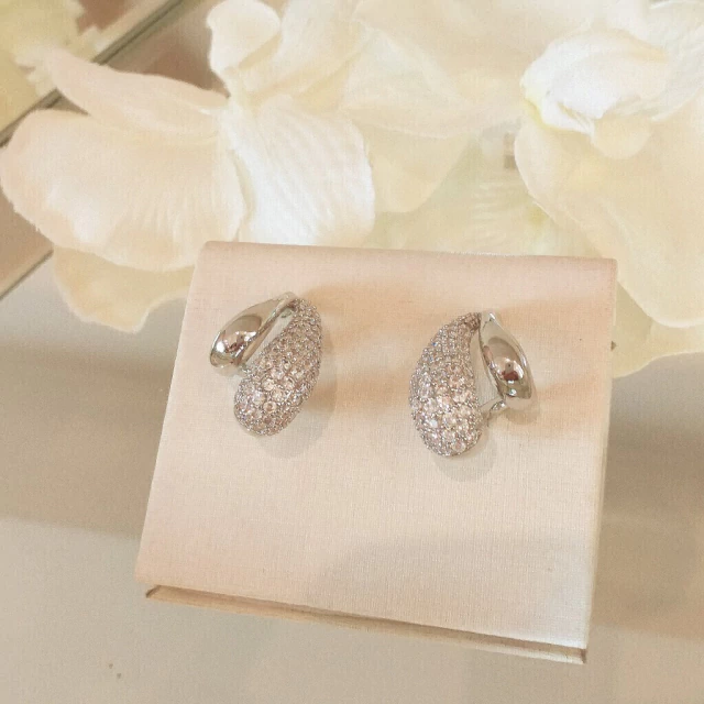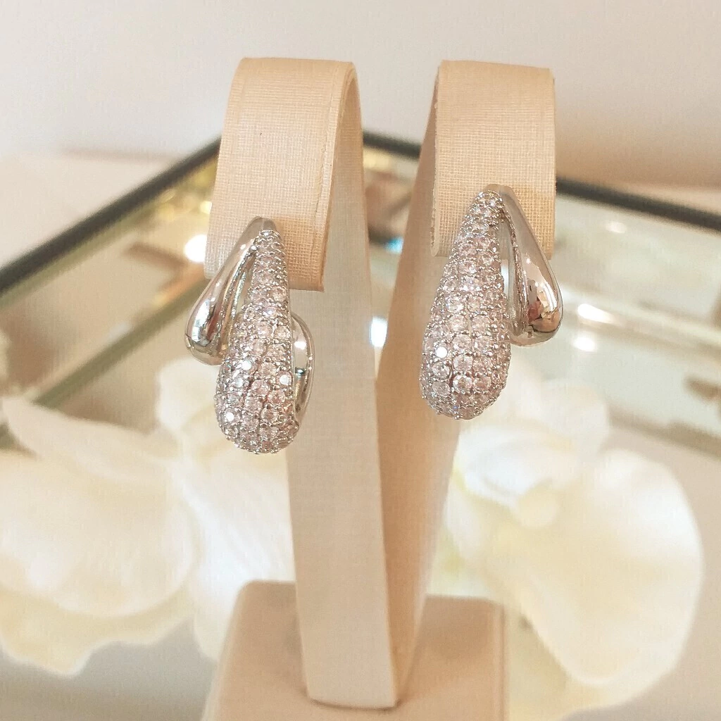 Brinco de gotas de metal e zircônia banhado em ródio branco.