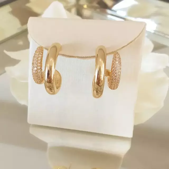 Brinco argola estilo piercing de metal com linha de zircônias.Semijoias banhadas em ouro 18k e verniz especial de proteção.