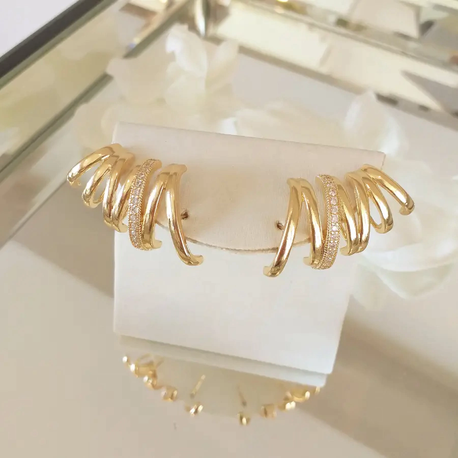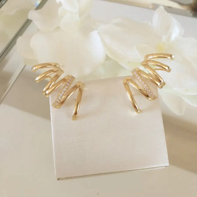 Brinco Ear Cuff com zircônia banhado em ouro 18k