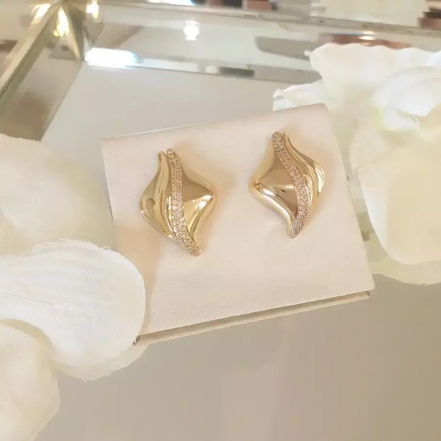 Brinco de Metal com zircônia.Semijoias banhadas em ouro 18k e verniz especial de proteção.