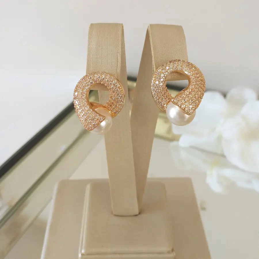 Lindo brinco cravejado com pérola 2.5 cm banhados em ouro 18k