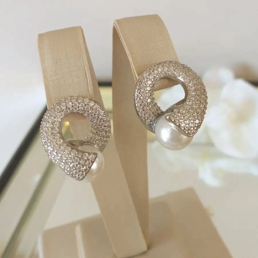 Lindo brinco cravejado com pérola 2.5 cm banhados em ródio