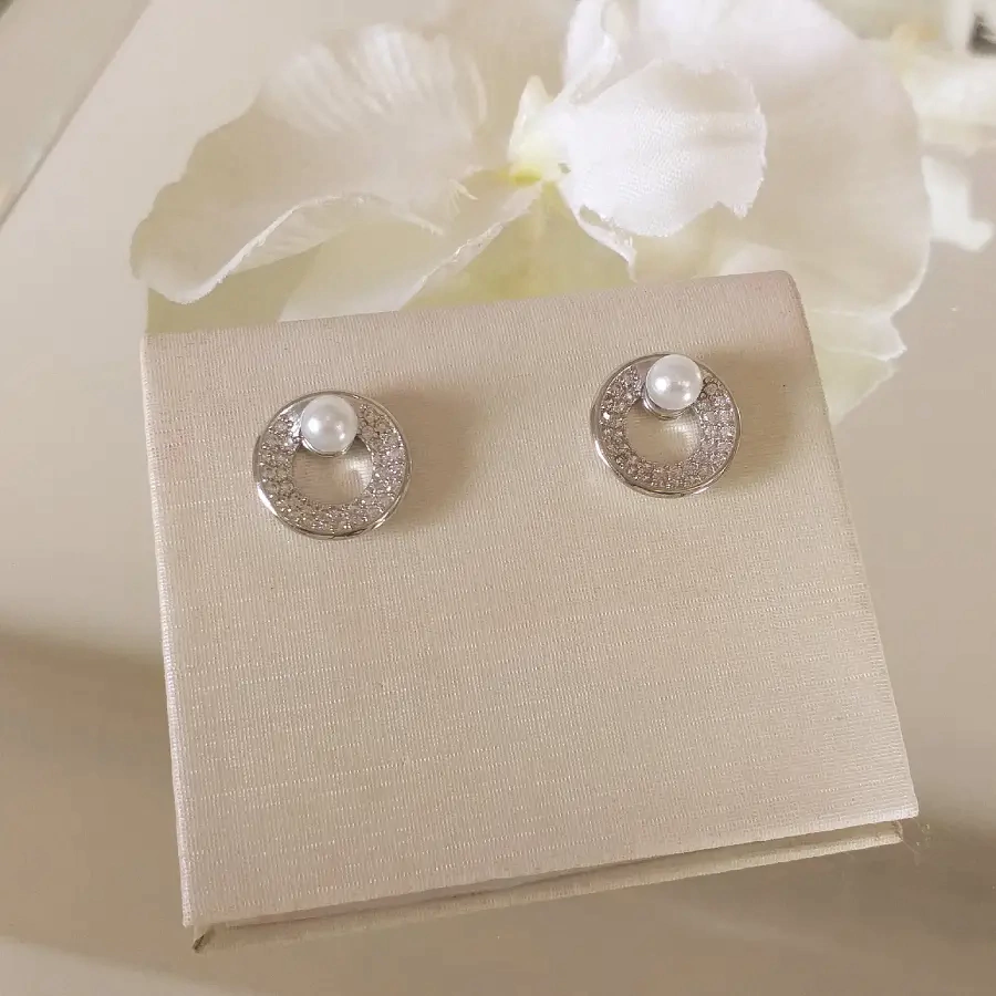 Brincode zircônia e pérola banhado em ródio
