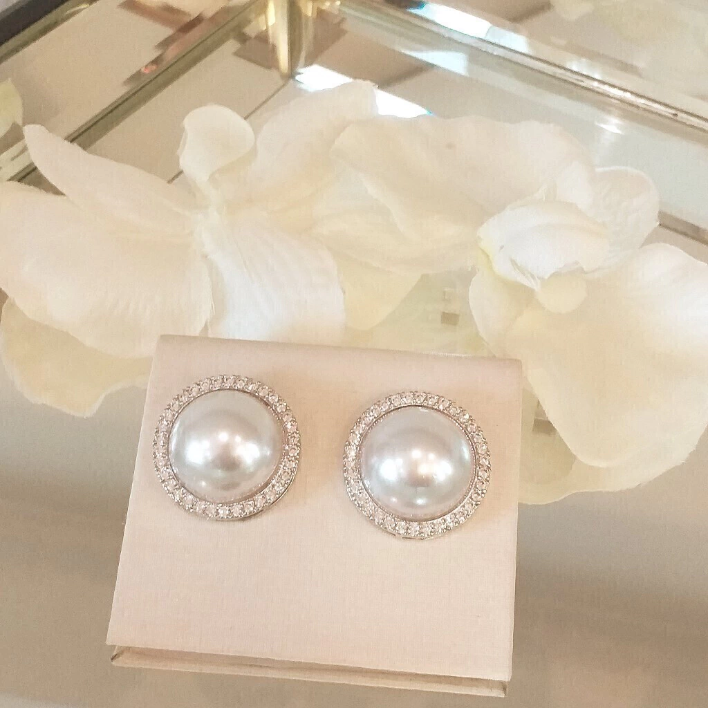Brinco de pérola com zircônia banhado em ródio branco