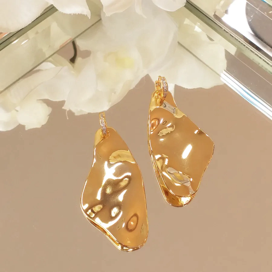 Brinco de placa. (Pecas banhadas em ouro 18K com verniz italiano e cataforético)