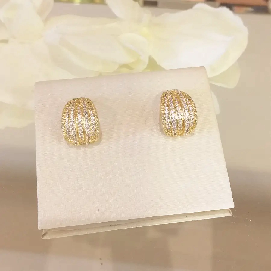Brinco de linha com zircônia baguete banhado em ouro 18k e verniz