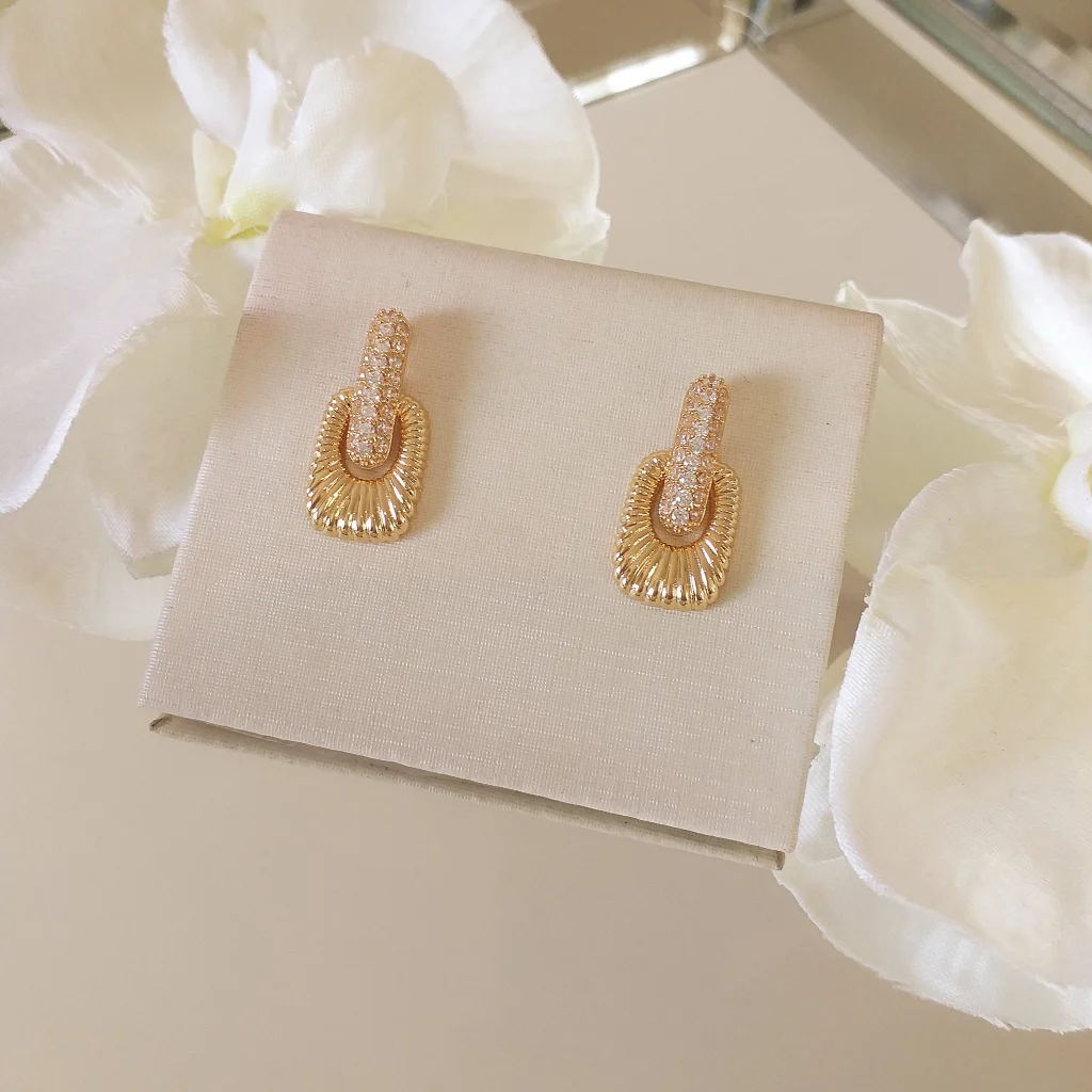 Brinco de metal e microzircônias banhado em ouro 18k e verniz de proteção