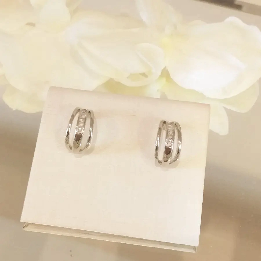 Em até 6x de R$ 4,95 sem juros À vistaR$ 28,22no Pix Brinco de linha com zircônia baguete banhado em ródio e verniz