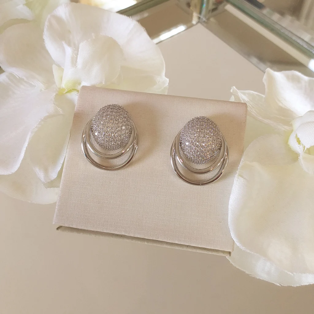 Brinco de metal e microzircônias banhado em ródio e verniz de proteção