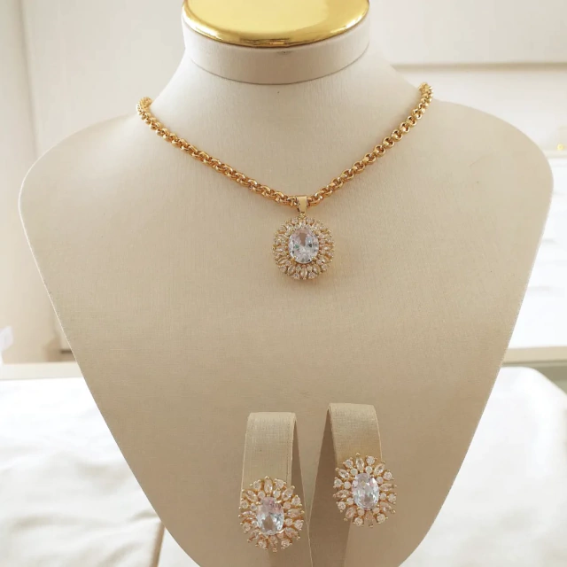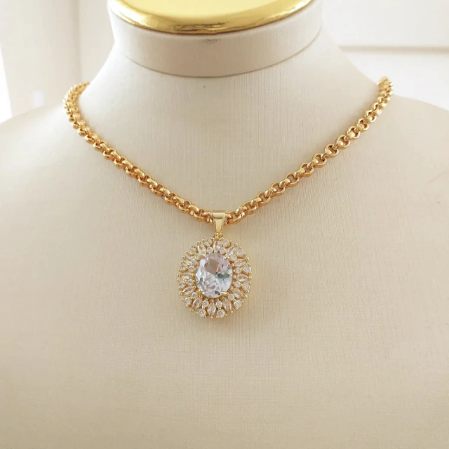 Conjunto de zircônia oval cristal e corrente de elos.