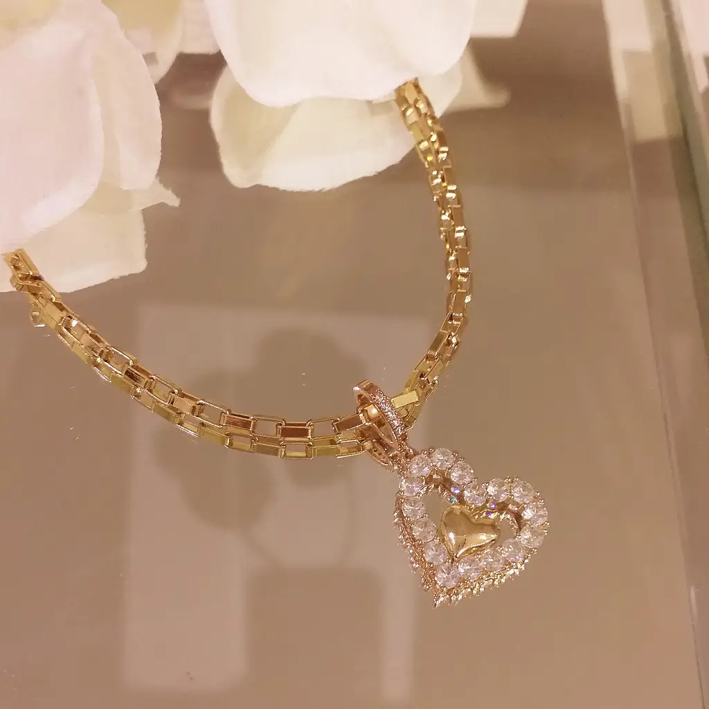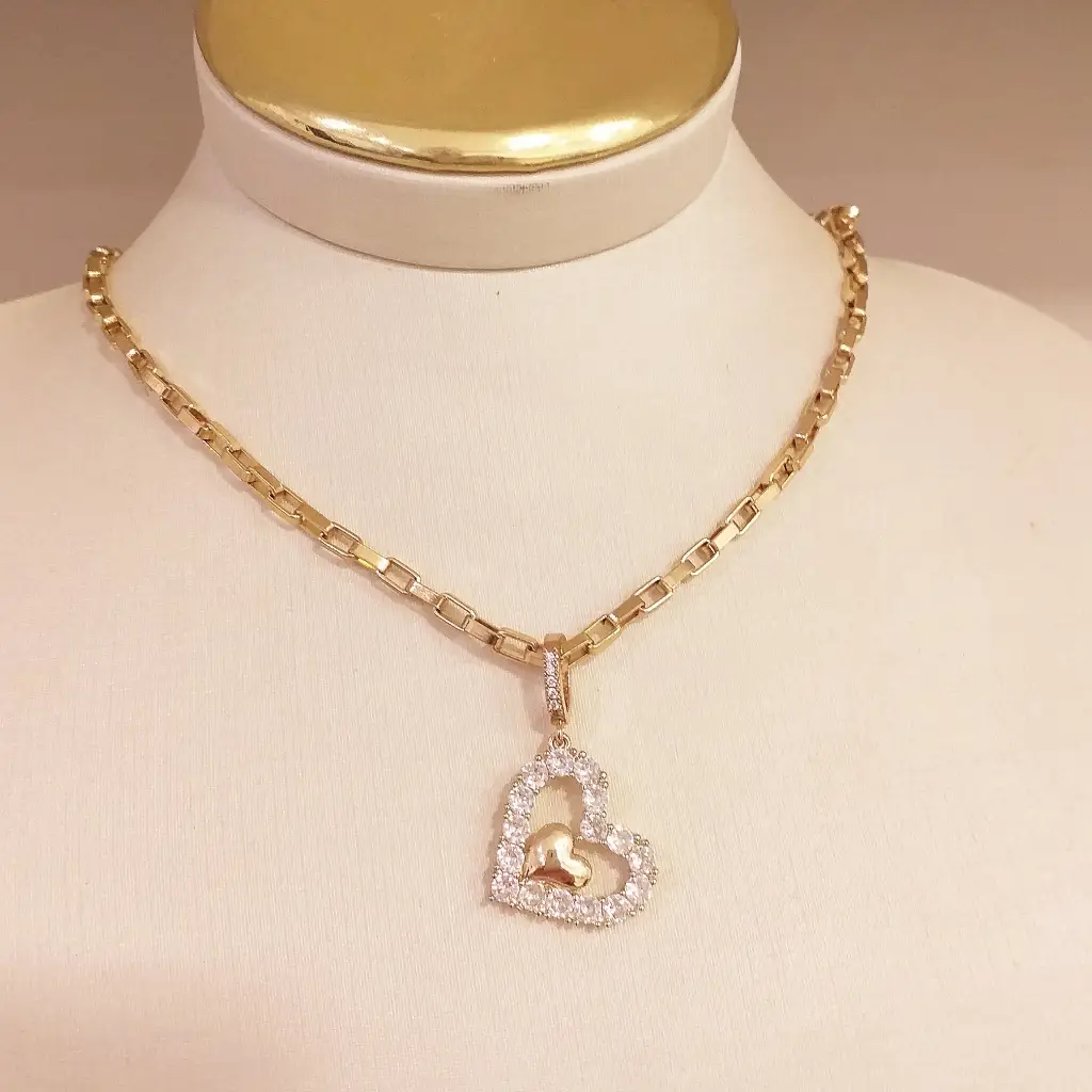 Colar de elos com pingente de coraçãoColar com 40cm + 5 cm de extensor