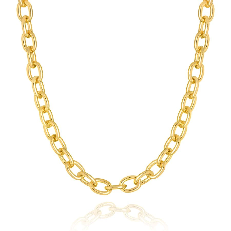 Colar de elo liso GRU médio com fecho normal banhados em ouro 18k (40 + 5 cm extensor)