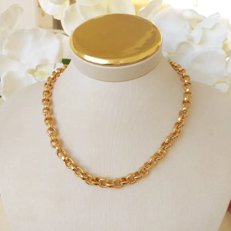 Colar de elos português banhado em ouro 18k e verniz italiano, para proteger ainda mais a durabilidade da sua semijoia.