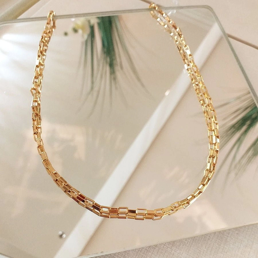 Colar elo quadradinho banhado em ouro 18 k (40 + 5 cm)