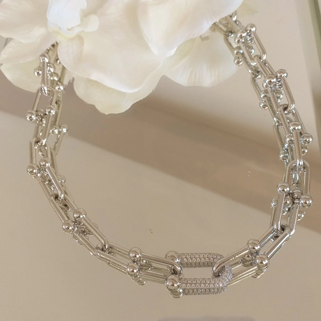 Colar de elos inspirado em joalheria de luxo.Banhado em ródio branco e verniz de proteção.