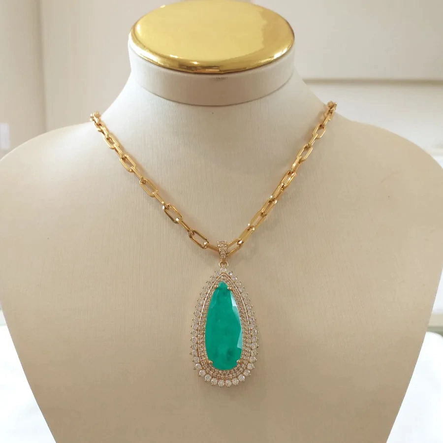 Colar de gota em zircônia fusion turmalina banhado em ouro 18k40 + 5 cm
