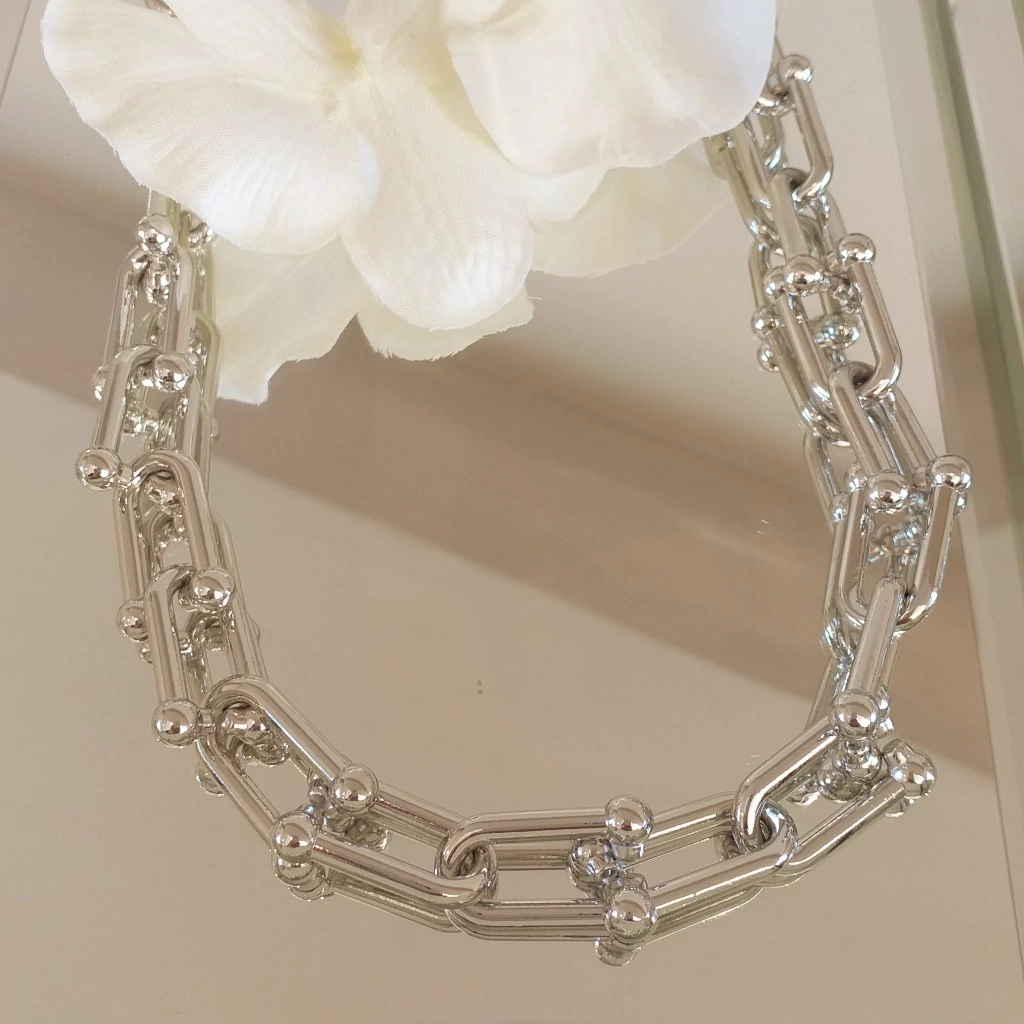 Colar de elos inspirado em joalheria de luxo.Banhado em ródio branco e verniz de proteção.