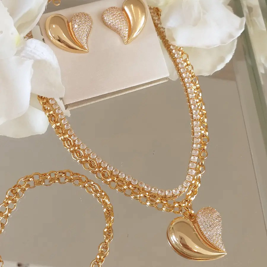 Belíssimo conjunto contendo 1 colar e 1 par de brincos cravejados