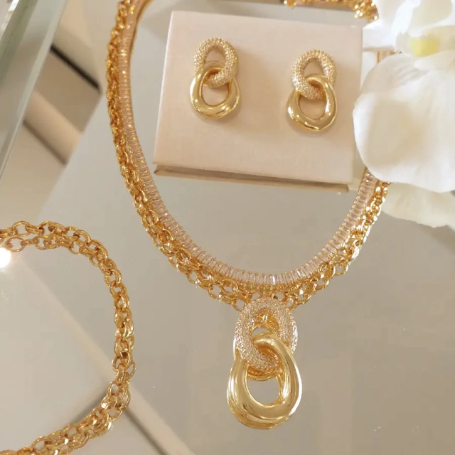 Belíssimo conjunto contendo 1 colar e 1 par de brincos cravejados
