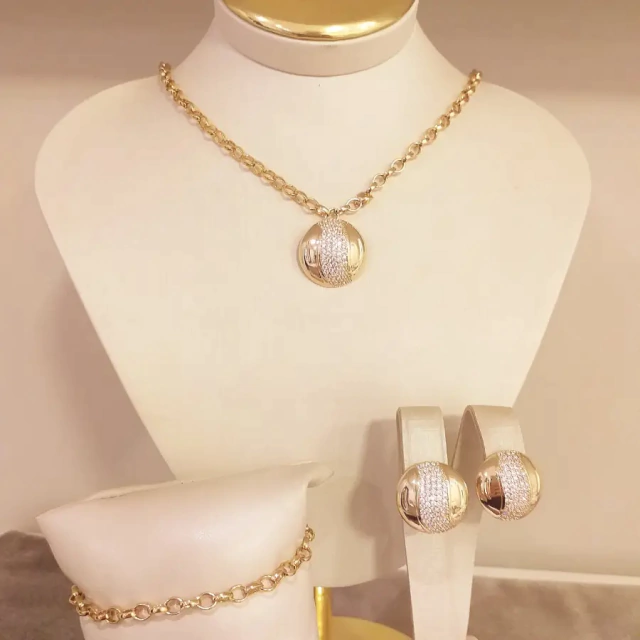 Lindo conjunto de esfera contendo 1 colar e um par de brincos banhado em ouro 18k