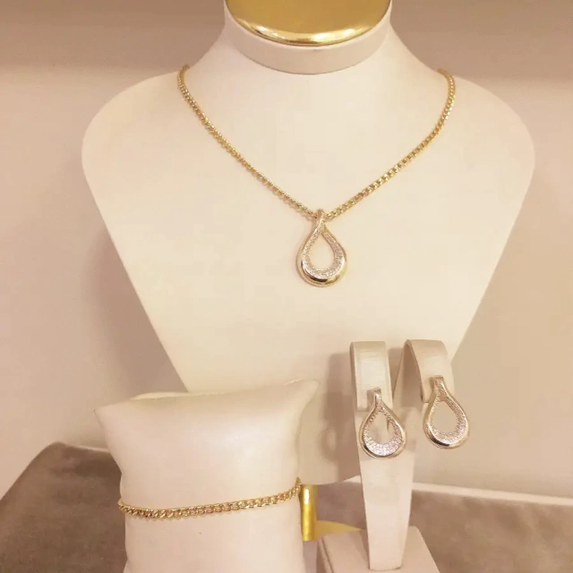 Lindo conjunto de zircônias contendo 1 colar e um par de brincos banhado em ouro 18k