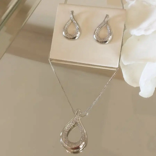 Conjunto de brinco e colar banhado em ródio