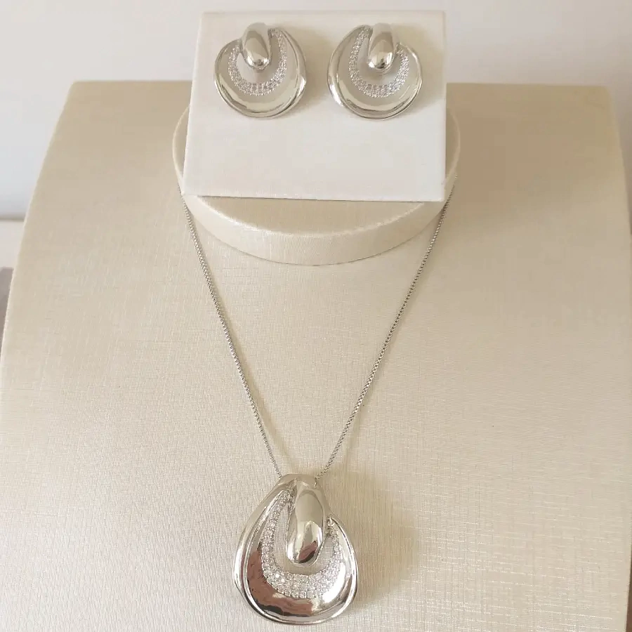 Em até 6x de R$ 13,28 sem juros À vistaR$ 75,72no Pix Conjunto de zircônias contendo colar e brincos banhado em ródio