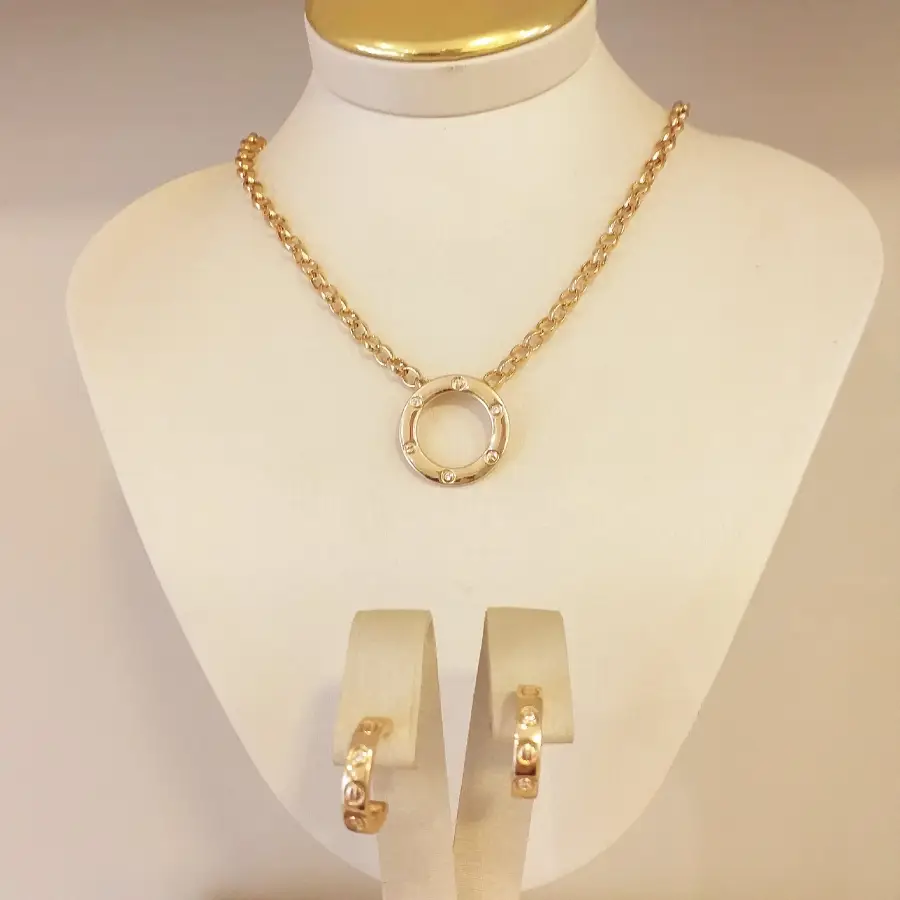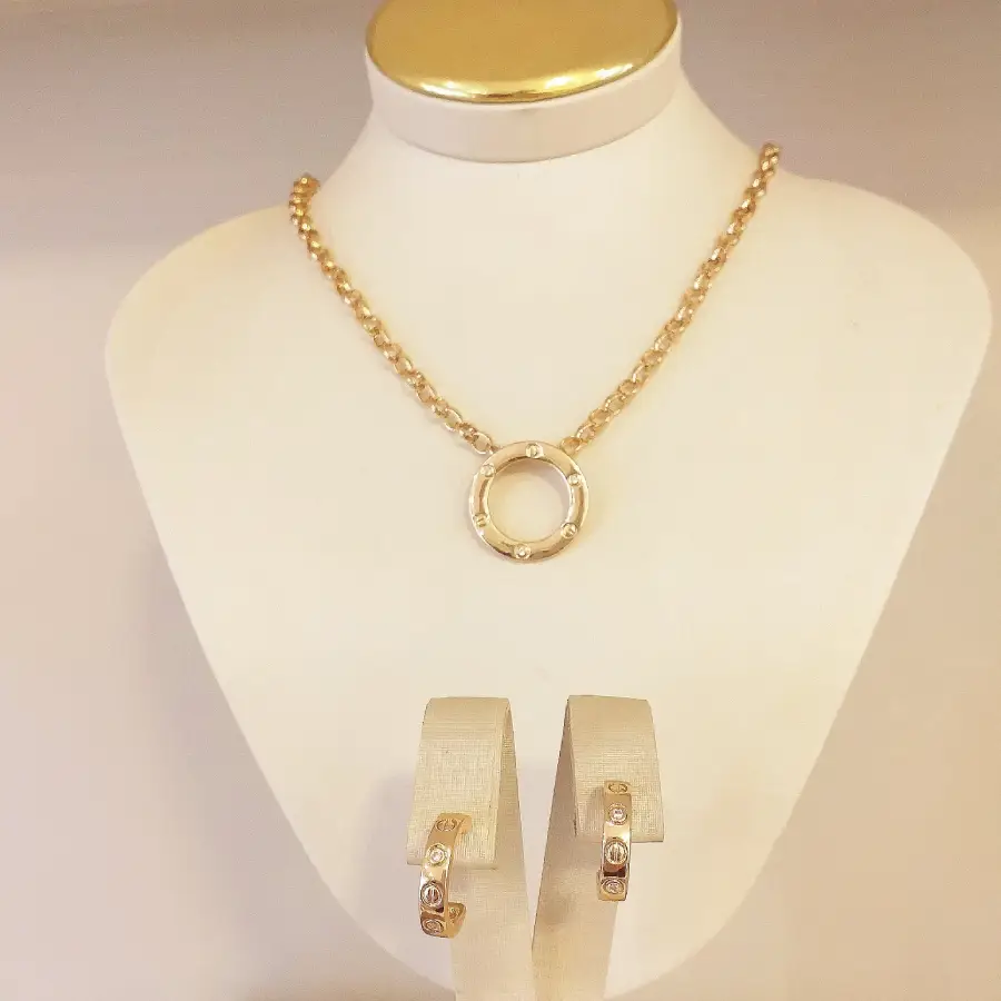 Conjunto de colar e brinco de marca de inspiração de luxo.