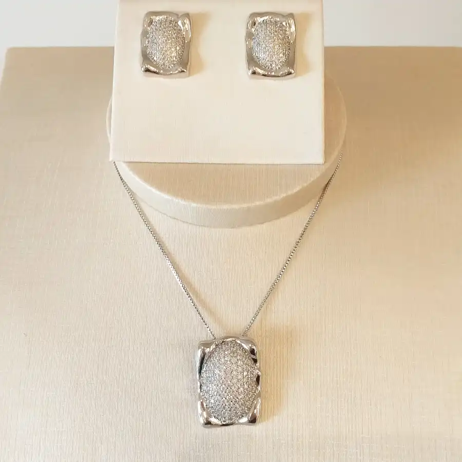 Conjunto de brinco e colar banhado em ródio