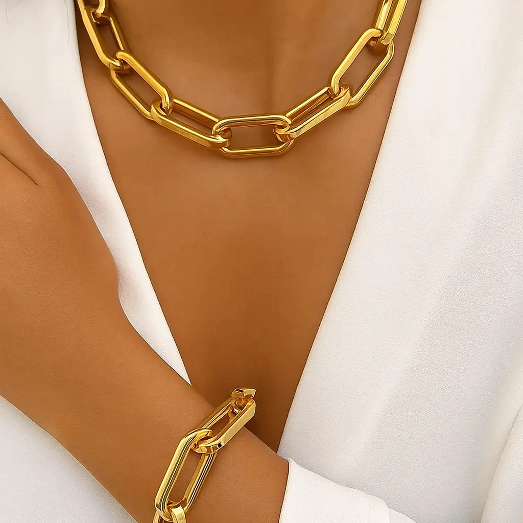 Conjunto de Colar e pulseira de elos maçicos poderosos.