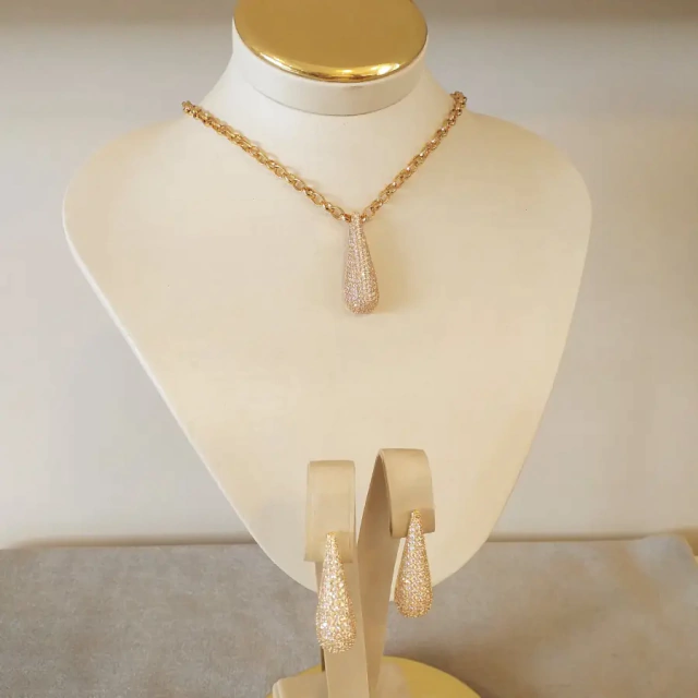 Belíssimo conjunto contendo 1 colar e 1 par de brincos cravejados