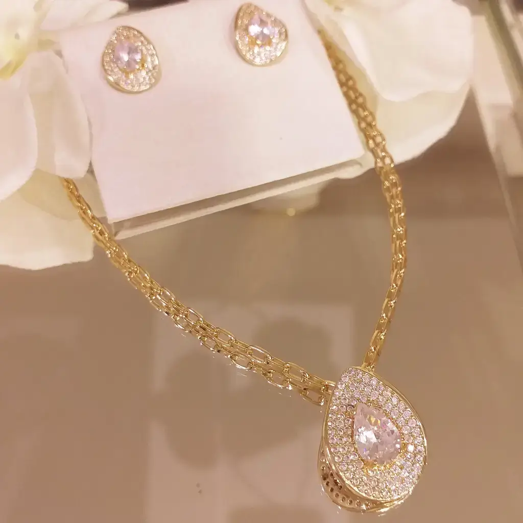Conjunto de colar e brincos em zircônias com corrente de elos banhado em ouro 18kTamanho: 40cm + 5 cm de extensor(a riviera de baguete é somente uma sugestão de composição e não faz parte do conjunto)