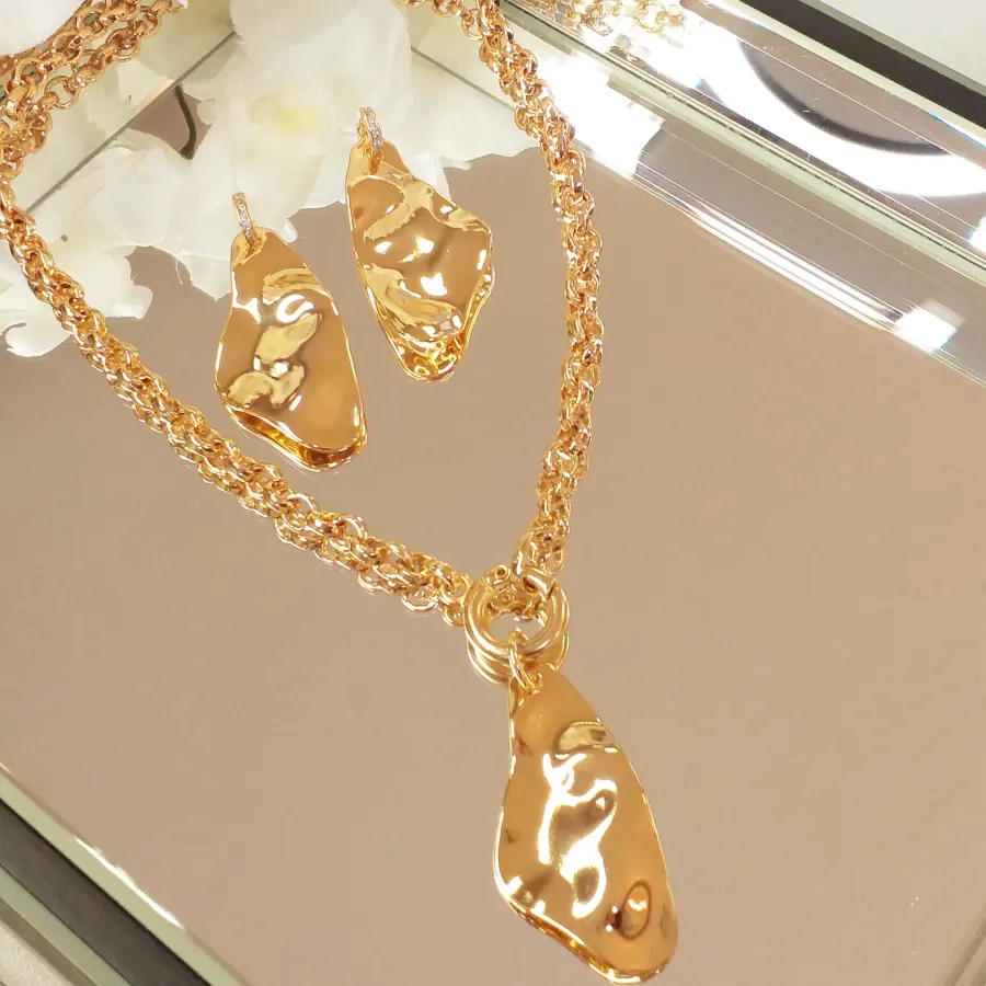 Conjunto de colar e brincos de placa. (Pecas banhadas em ouro 18K com verniz italiano e cataforético)