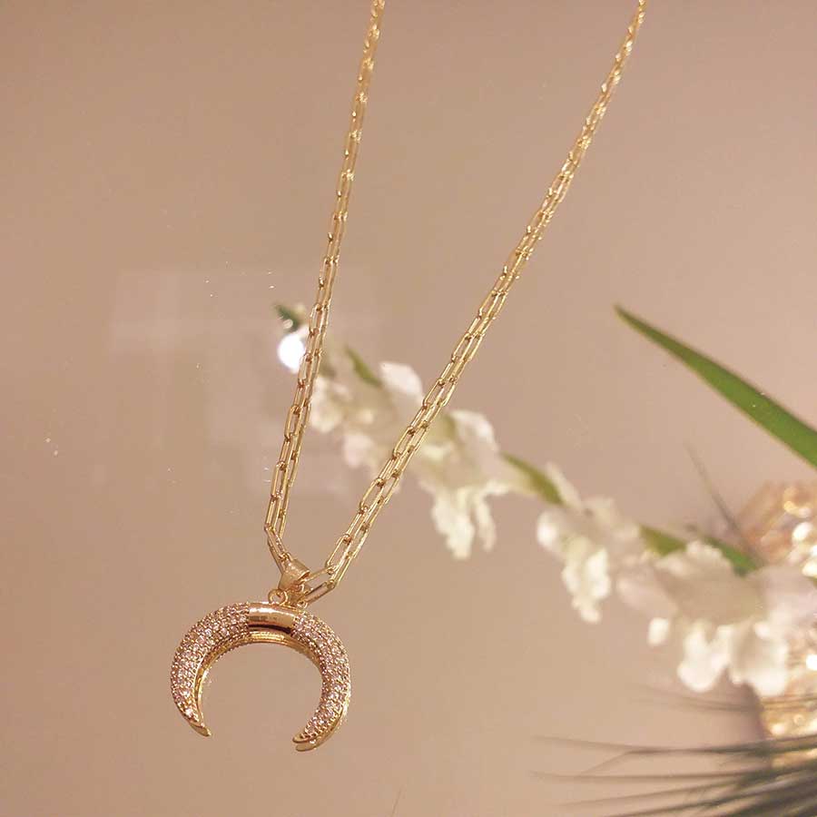 Colar de pingente chifre zircônia com cartier