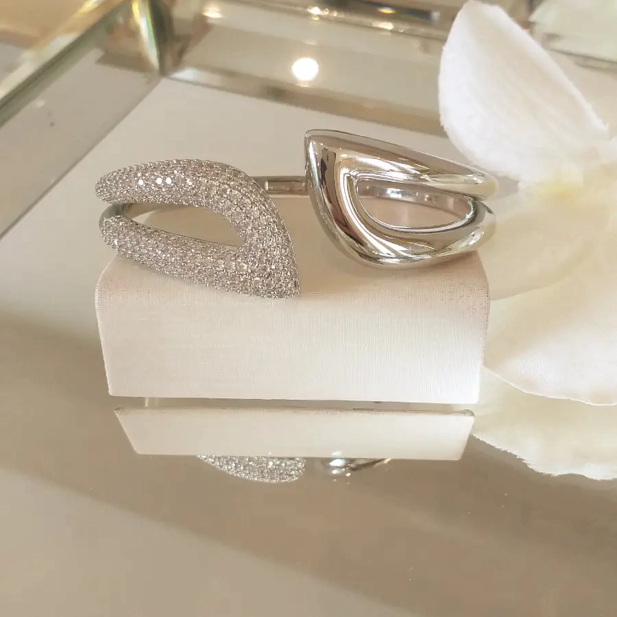 Maxi bracelete em ródio cravejado com micro zircônias