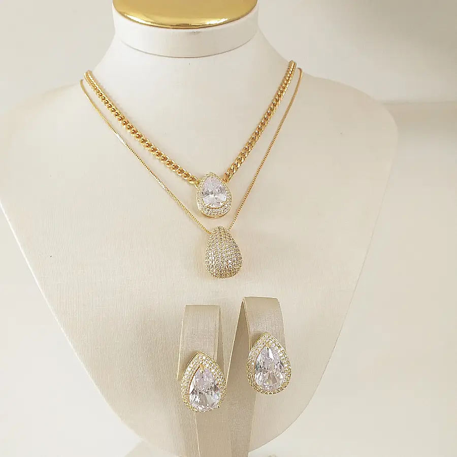 Colar de gota microcravejada 45 + 5 cm de extensor