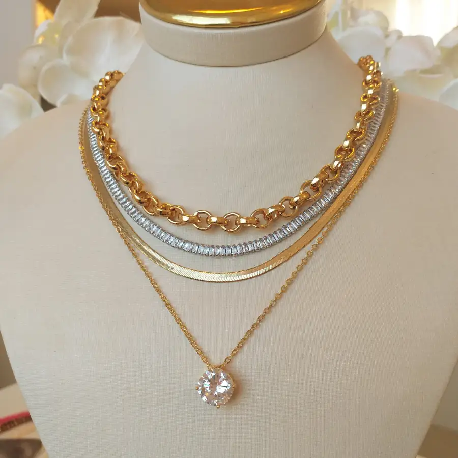 Colar gota crystal com elos – 2731