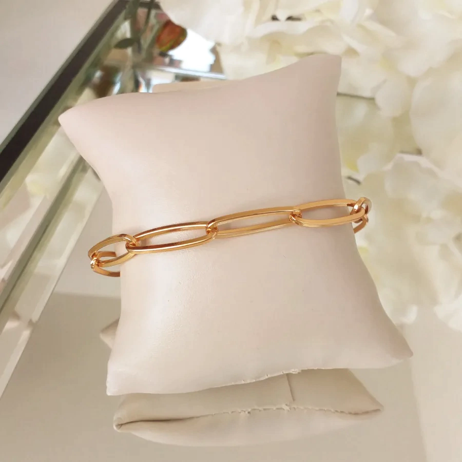 Pulseira de elos finos e grandes, extremamente delicada e sofisticada.