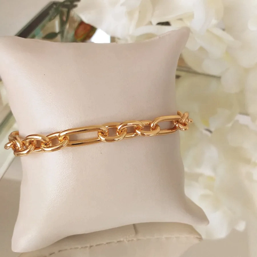 Pulseira de elos super sofisticada e banhada em ouro 18k e verniz italiano, para proteger ainda mais a durabilidade da sua semijoia.